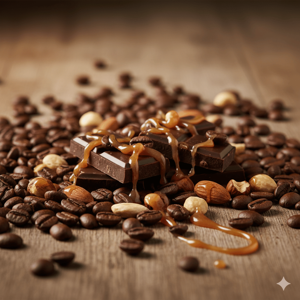 Er zeichnet sich durch ein ausgeprägtes Profil von Zartbitterschokolade, gerösteten Nüssen und karamellisierter Süße aus. Die dunklere, aber schonende Röstung sorgt für einen vollmundigen, cremigen Espresso.